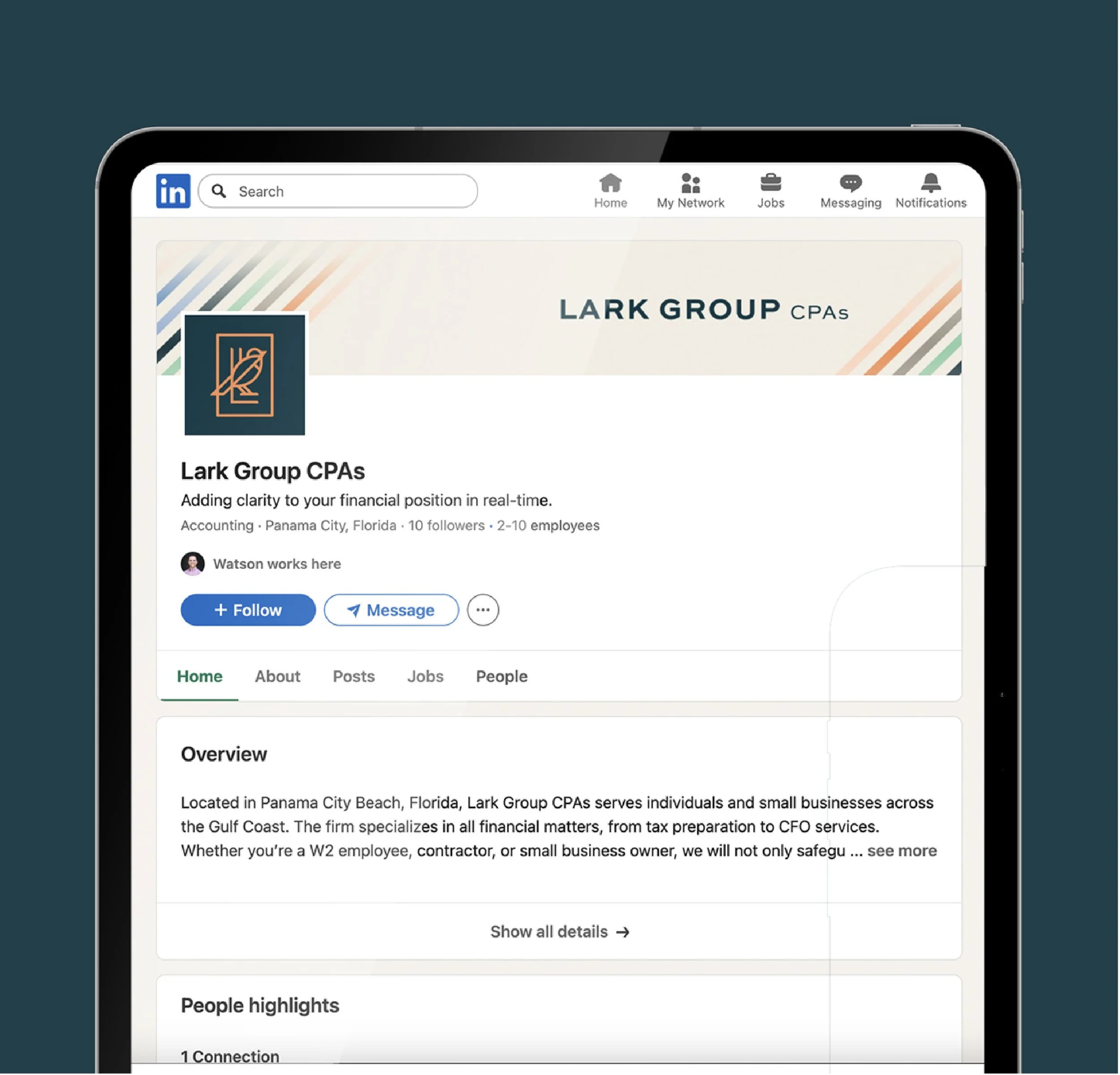 After an impressive corporate career auditing Fortune 500 companies and scaling international tech firms Watson Lark was ready to start his own CPA firm. He wanted a unique mark and logo so he could launch his new business with confidence and pride.